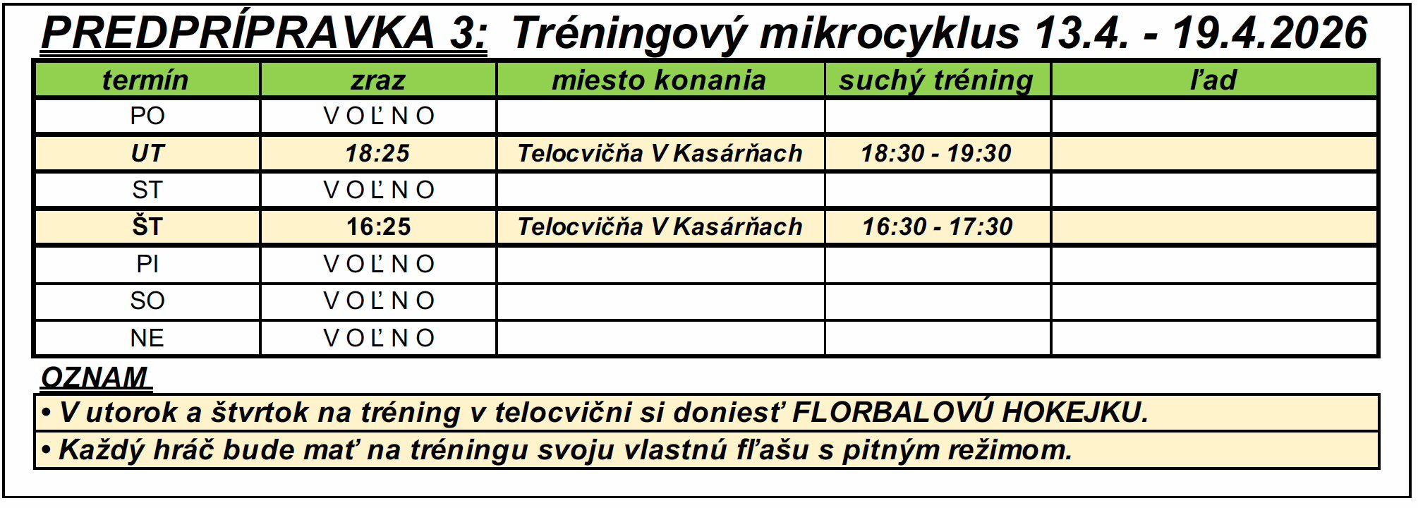 PREDPRÍPRAVKA 3.šht: Tréningový mikrocyklus