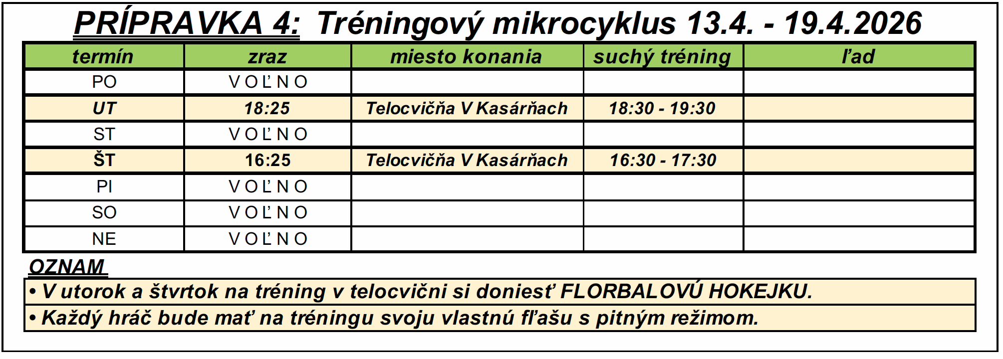 PRÍPRAVKA 4.šht: Tréningový mikrocyklus