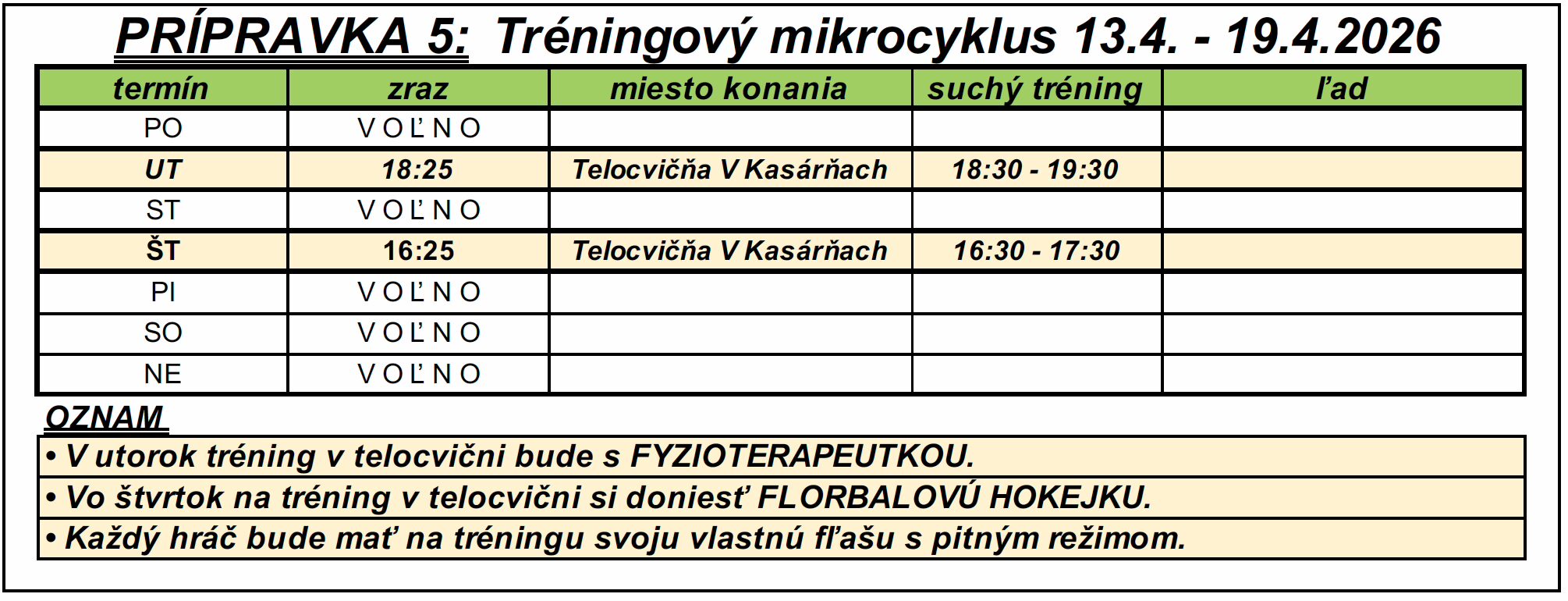 PRÍPRAVKA 5.šht: Tréningový mikrocyklus